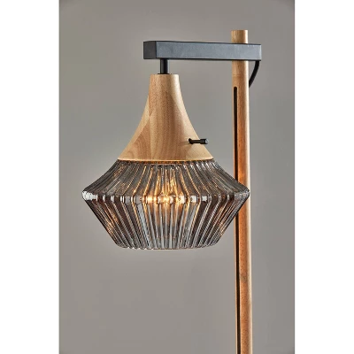 Beauty is in the details when it comes to the Elsie floor lamp. From the ribbed, smoked glass shade to the natural wood that highlights the material’s grain, to the stunning silhouette, every aspect of this lamp exudes elegance and style. Anchored by a round base in black finish, a matching thin pole extends and transitions to a natural wood pole before meeting with a short black arm at a 90° angle. Suspended from the arm is a stunning light shade with a natural wood base leading to smoked, ribbed glass that throws soft light from a 60W bulb. The black fabric-covered cord not only powers the lamp but stands out as a design piece, visibly running down the length of the wood pole. Complete your décor with the Elsie table lamp and pendant light.