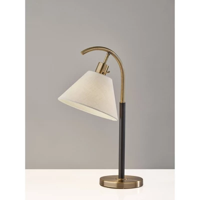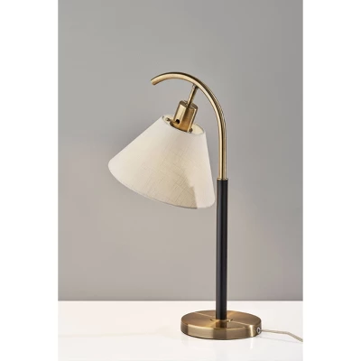 The clean, elegant style lines and blend of materials in the Jerome table lamp make it a stylish addition to contemporary, mid-century modern, or modern chic décor. At 22″ tall, this lamp fits perfectly on desks, nightstands, end tables, or accent tables. The lamp features a 7″ diameter antique brass base supporting a thin arcing stem that transitions from black metal finish to antique brass. Attached to the stem is a cone-shaped shade made of textured white fabric to softly diffuse the light from a 60W bulb (not included). Easily turn the lamp on or off with a rotary socket switch. Complete your space’s décor with the coordinating Jerome floor lamp.