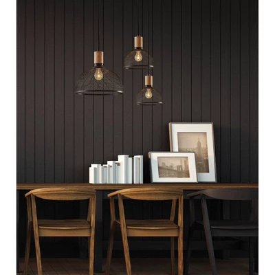 Add a dramatic industrial element to your dining or living space with the Dale Large Pendant. A contemporary black metal mesh shade is paired with a natural rubber wood accent resulting in a modern industrial style with hints of scandinavian influence.This style looks great with all bulb types. Use a vintage edison bulb for soft, mood lighting or an LED bulb for efficient overhead light. With 72 inched of black fabric covered cord, this pendant can be adjusted to fit your ceiling height.