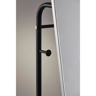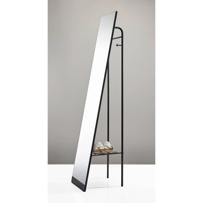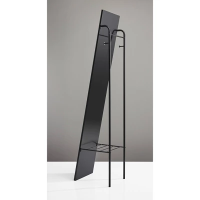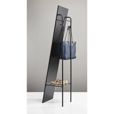 A timeless look, the Tillie Floor Mirror is both functional and decorative. With a freestanding design, this mirror can be placed anywhere in the room. A matte black finished frame allows for versatility to fit all design styles. Not only does this item function as a standing mirror, but it also has two coat hooks and a metal wire shelf for extra storage functionality.